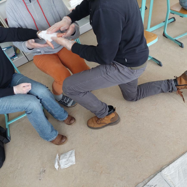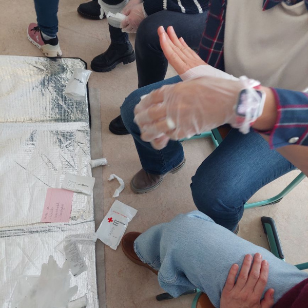 Mit vielen praktischen Übungen, Fallbeispielen und der Möglichkeit, Fragen aus dem Schulalltag einzubringen, wurden die Mitarbeitenden fit gemacht, im Ernstfall ruhig und überlegt handeln zu können. Das richtige Anlegen eines Fingerkuppenverbandes bei Schnittverletzungen löste bei dem ein oder anderen Kollegen durchaus ein AHA-Erlebnis aus.