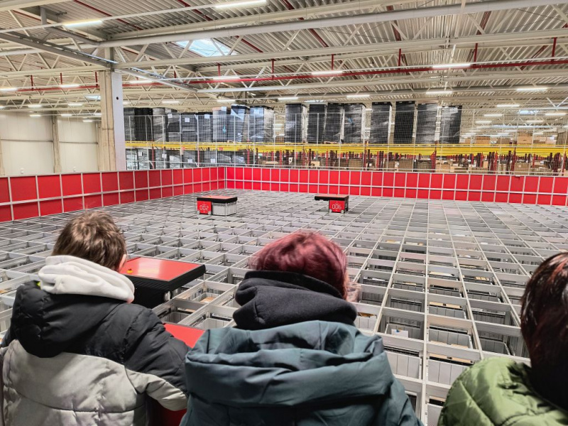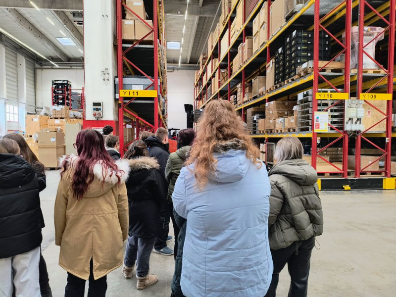 Im Anschluss erhielten die Klassen bei einer Führung über das Werksgelände einen anschaulichen Einblick in die vielfältigen Tätigkeiten eines Lageristen. Besonders beeindruckend waren die hohen Regallager, autonom fahrende Gabelstapler und ein vollautomatisiertes Lagersystem für Kleinteile, die zeigten, wie modern und technisiert Logistik heute organisiert ist.